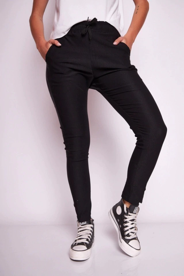 Pantalon tipo jogging,  tiro alto, achupinado con elastico y cordon en cintura, bolsillos en los laterales. Es tan comodo que lo vas a tener como tu prenda estrella.